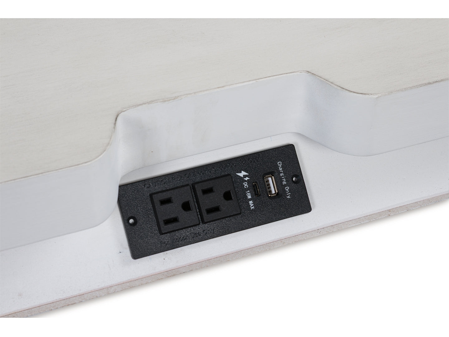 Details | Made with hardwood solids, veneers and MDF substrates, Rubbed antiqued white finish, Metal hardware with pewter-tone finish, 3 smooth-gliding drawers with fully finished interiors, French/English dovetail construction and heavy-duty ball-bearing side glides, Top drawer felt lined, 110V power supply with USB-A and USB-C charging ports, Power cord included; UL listed | |